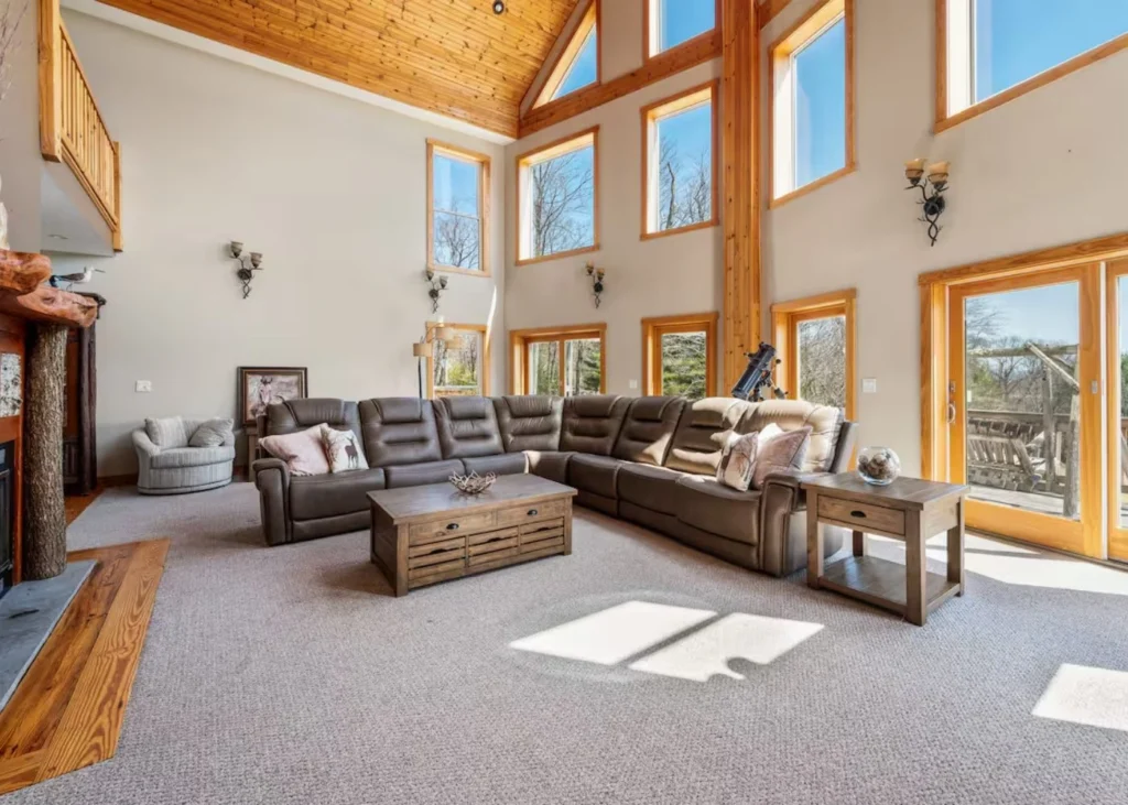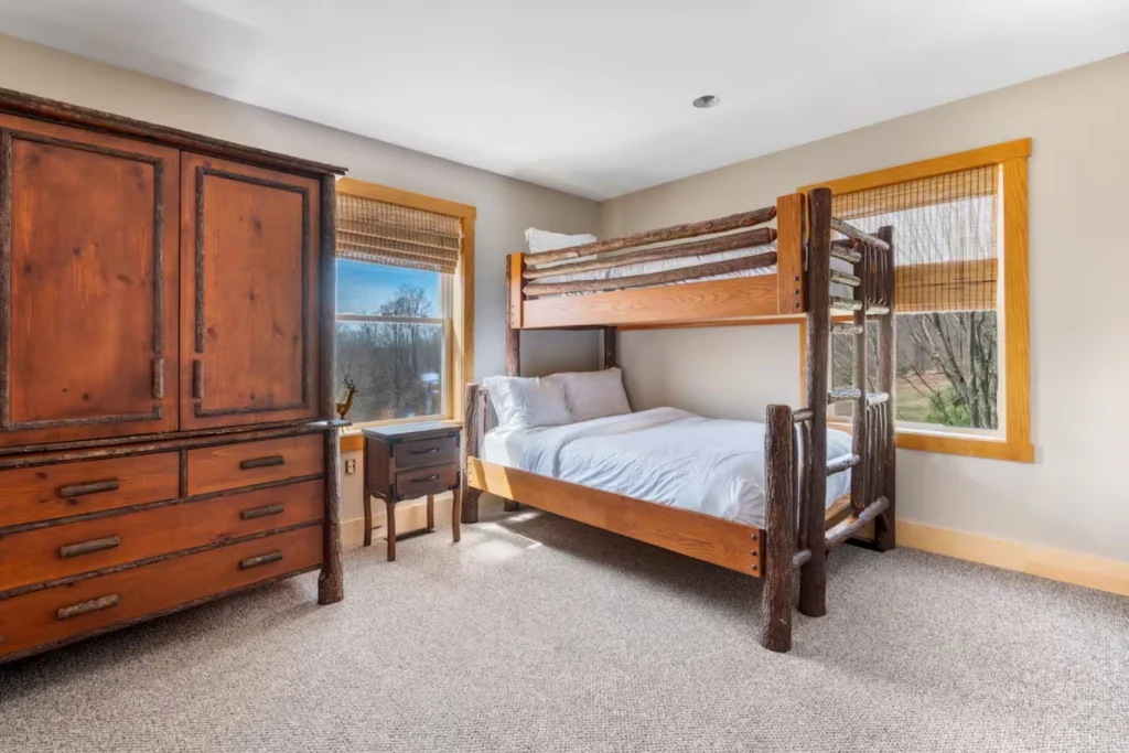 High Range Retreat is a private 4,400 sq.ft. home with 8 bedrooms and 6 bathrooms, set on 164 wooded acres in Ellenville, New York.
