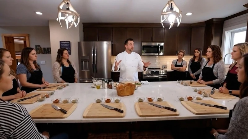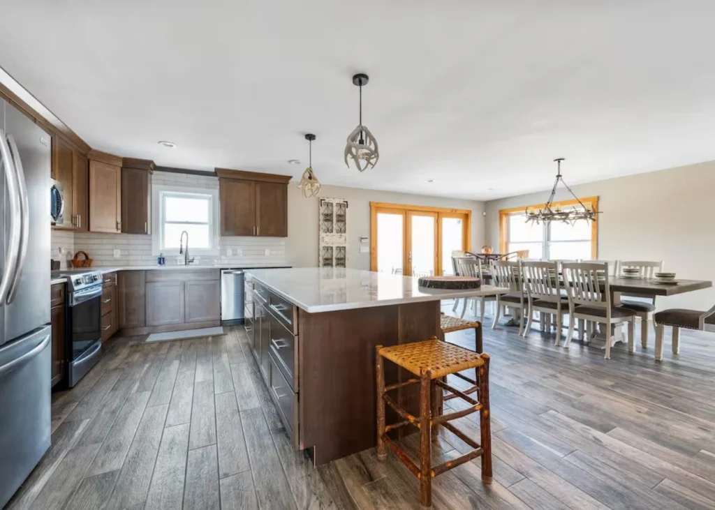 A large, fully equipped kitchen available for chef-led meals and on-site food prep.